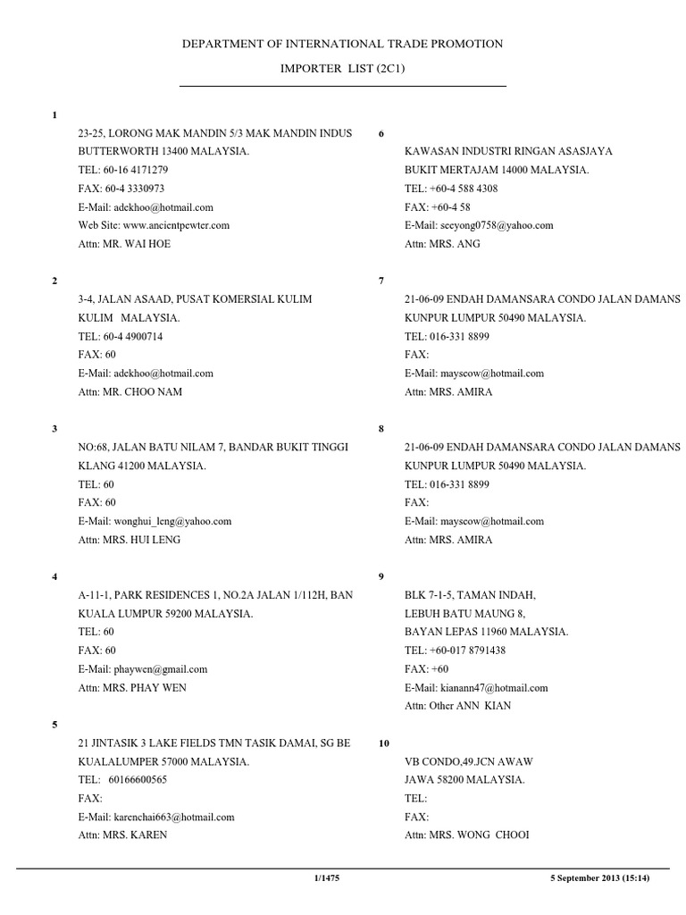 3 jalan usaha 2 lorong usaha utama taman perindustrian ulu choh 81500 pekan nenas johor 07-69933445792 07-69935875876 aqina farm 1 lot 2235 mukim api-api parit sikom 82010 pontian johor t4 ayam pedaging 3 aqina farming sdn bhd no. 12Jalan Parit SemerahTaman Semerah Jaya 1 Pontian. 32 Jalan Dato Yusof Shahbudin 19 Taman Sentosa 41200.